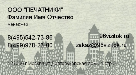 Срочная печать визиток в Москве. Вы можете отправить заказ на почту zakaz@96vizitok.ru произвольным письмом на адрес филиала из которого Вам удобно забрать.